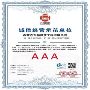 內蒙古東柏建筑工程有限公司被評為AAA級信用企業
